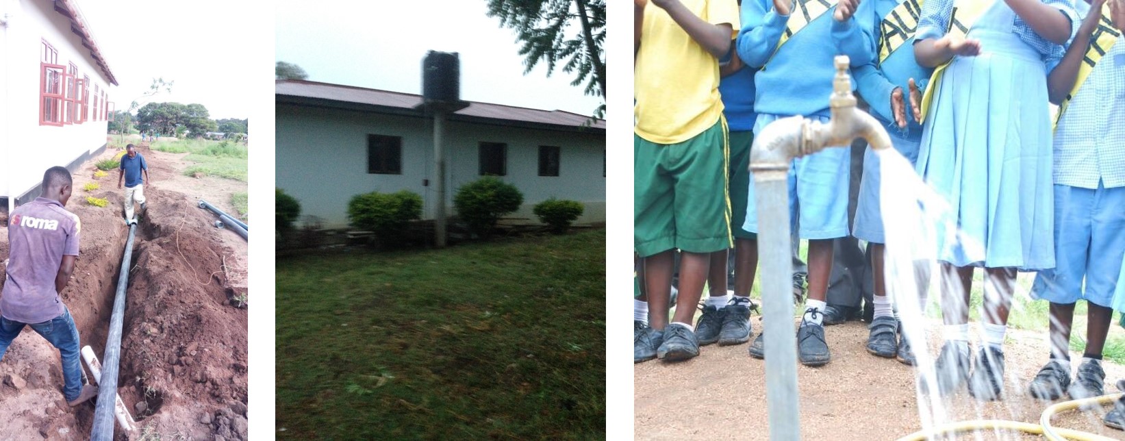 The 7th grade rain collecting roof's gutters will connect directly into the clean water system's pipes and rain water will then be stored in the central underground reservoir. Stored water is then pumped up to the holding tanks and then water can flow to the spigots on campus.